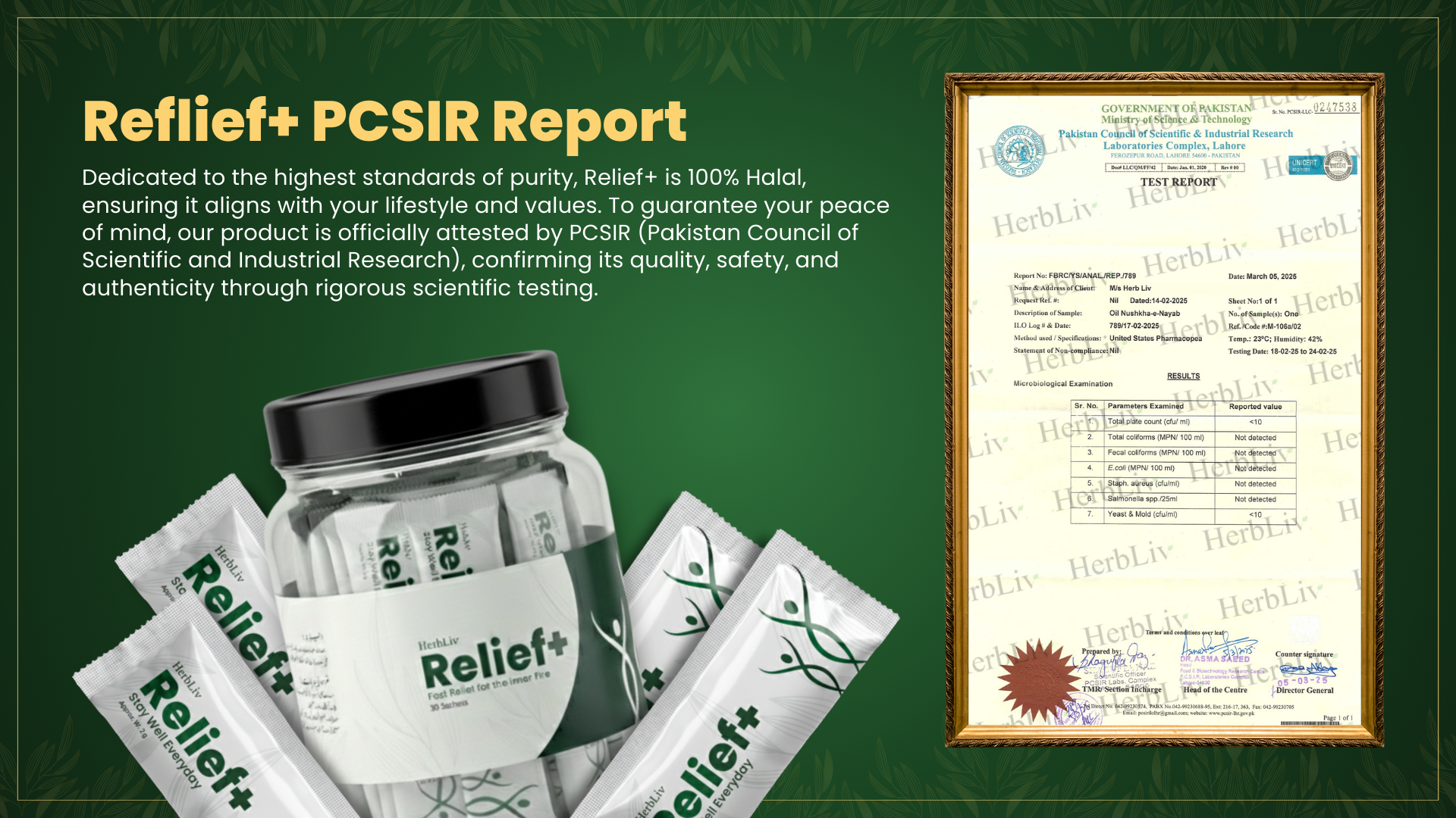 Relief+ ek mukammal herbal formula hai jo PCSIR se approved hai. Iska kisi qisam ka koi side effect nahi hai.
